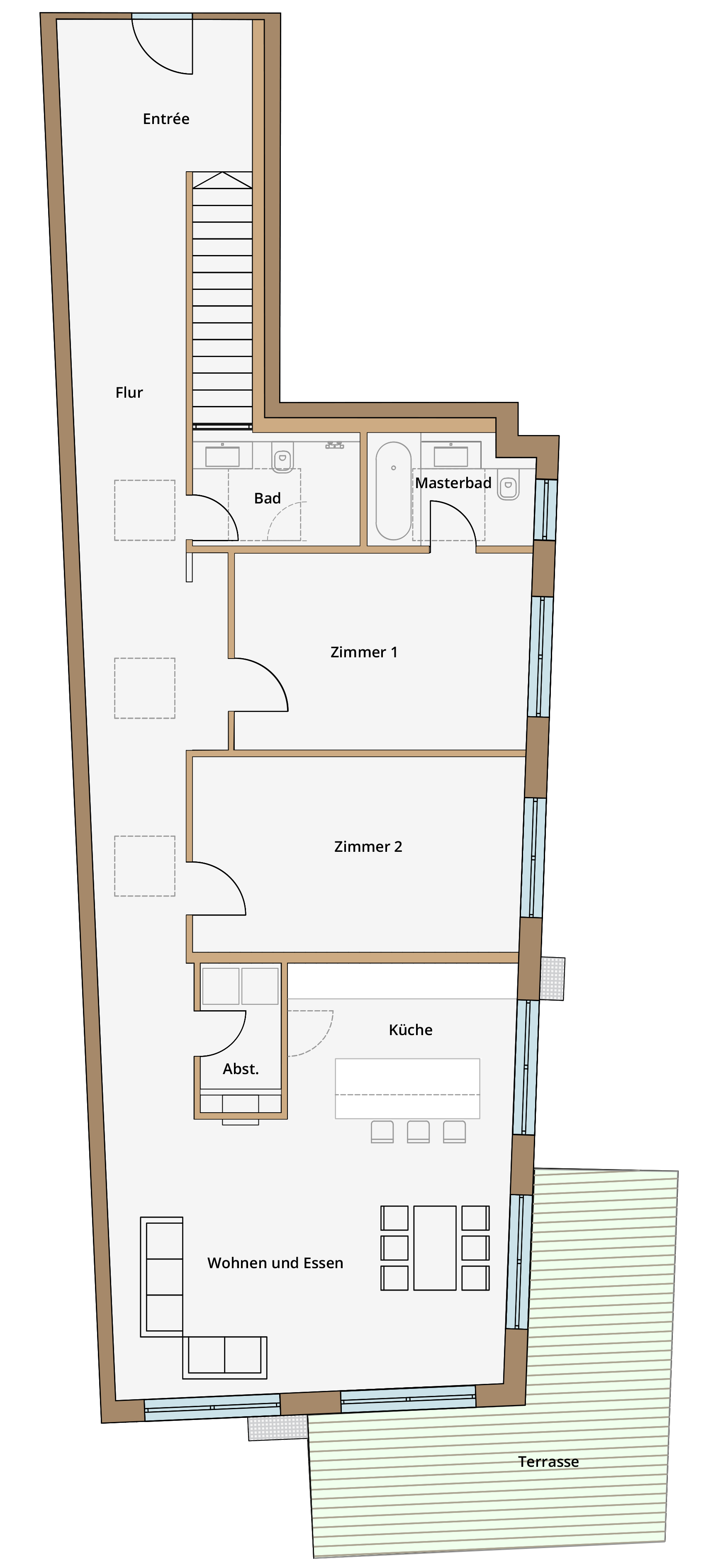 Terrasse 23,78 m² (100%) * 0,5    = 11,89 m²